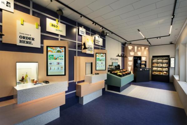 - Technologie: Digitale Selbstbedienungsterminals, automatisierte Warenausgabe