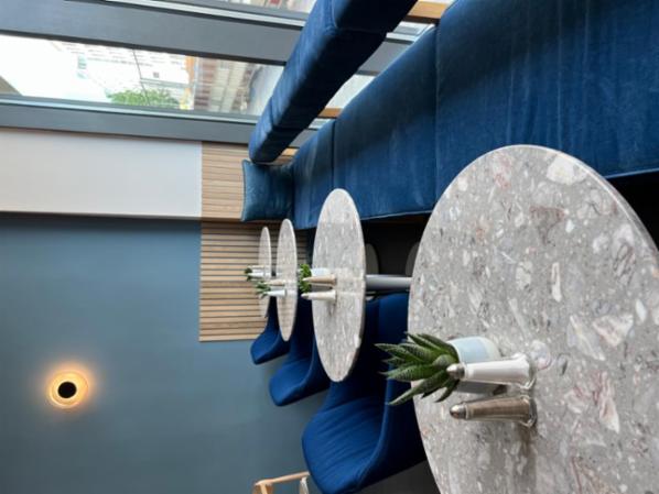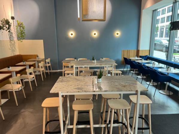 Das Cafe hat eine Fläche von ca. 125qm und ist komplett durch die Firma Raumschiff Commercial Environments in 2018 ausgestattet worden. Die Möbeleinbauten sind maßgefertigt auf die Fläche abgestimmt.
