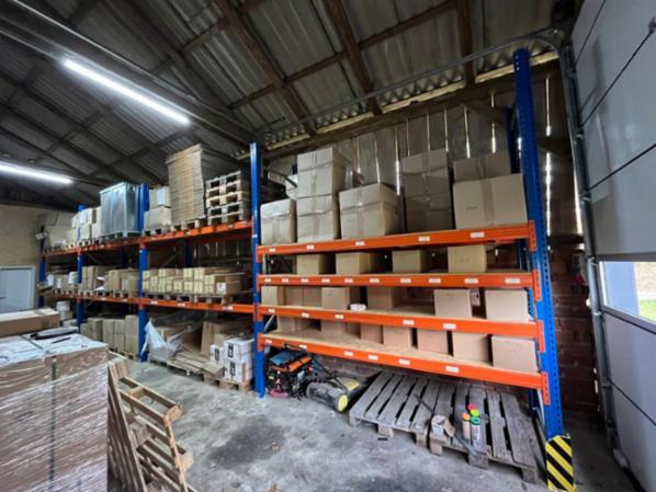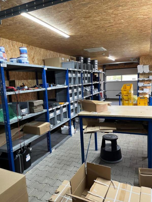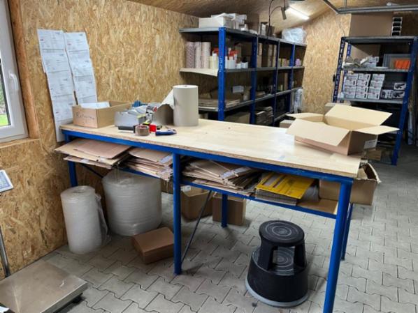 - Hochwertige Ausstattung: Schwerlastregale, Palettenregale, Einschweißmaschine, Fotobox, Hubwagen etc.