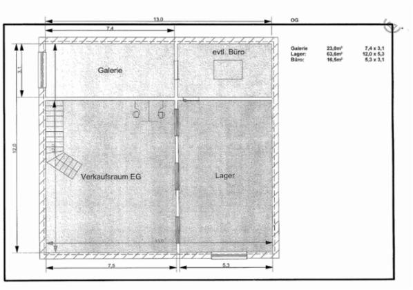 EG: Showroom über beide Ebenen in der Höhe ( 65m² )