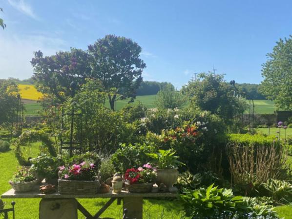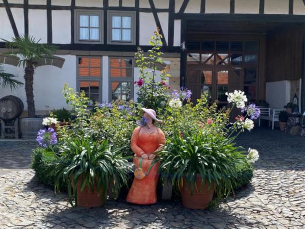 Im angrenzenden Gebäude, der früheren Stallung und Scheune, befindet sich heute der großzügige Restaurantbereich mit lichtdurchflutetem Wintergarten, gemütlichen Frühstücksraum, Lounge/Aufenthaltsbereich und einladender Rezeption. Von hier eröffnet sich ein traumhafter Blick in den liebevoll angelegten, top gepflegten Rosengarten. Ab Juni erblühen rund 500 Rosen, begleitet von unzähligen weiteren Blüten, und schaffen eine Atmosphäre, die Gäste verzaubert und zum Verweilen einlädt.