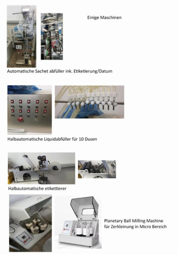 Bestandteil des Angebots sind manuelle /halbautomatische Maschinen für Produktion und Abfüllung, eine manuelle Etikettierlösung sowie die komplette vorhandene Produktbasis. Dazu gehören fünf fertig hergestellte und registrierte Produkte inkl. Verpackungen, die bislang nicht aktiv vermarktet wurden, sowie mindestens zehn weitere Produkte, bei denen die Entwicklung (R&D) abgeschlossen ist und die bereit für Registrierung und Produktion sind. Rezepturen, Dokumentationen und vorhandenes Know-how sind enthalten.