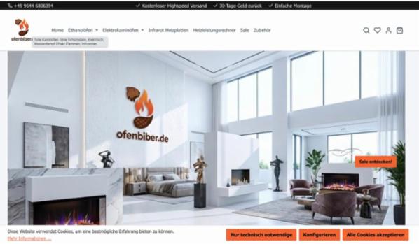 Ofenbiber.de – Shopware 6 Nischen-Shop: Kamine für Fertighäuser inkl. Rechner