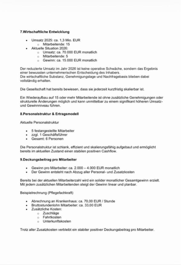 Die Gesellschaft erwirtschaftet bereits laufende Umsätze und stabile Gewinne und ist sofort operativ übernehmbar.