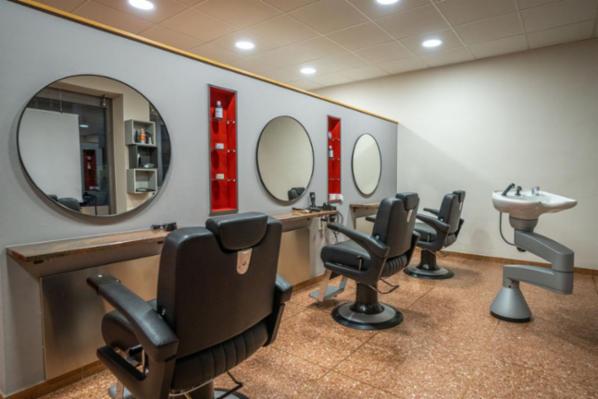 -Fläche & Ausstattung: ca. 98,6 m², 9 Bedienplätze (3 Herren, 6 Damen Bedienplätze), 3 Rückwärts-Waschplätze, 1 Vorwärts-Waschplatz , klimatisiert