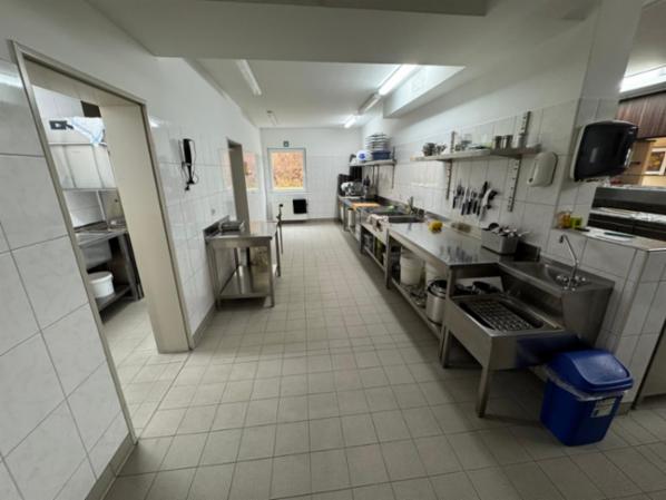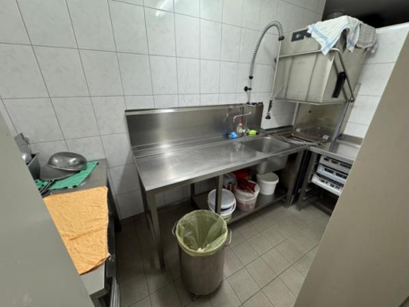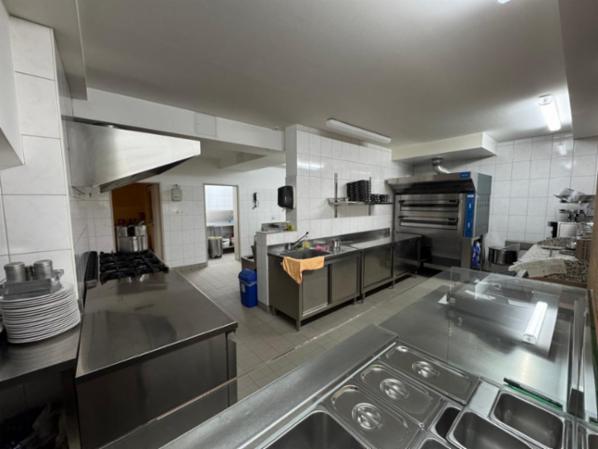 Zum Inventar gehören Tische und Stühle sowie Geschirr und Besteck. In der Küchen stehen ein Pizzaofen, ein Pizzatisch, ein Salattheke, Gasherd mit acht Flammen, drei Edelstahlküchenzeilen, ein Siebträgerkaffeemaschine, ein Kühlkammer, eine Kühltruhe und ein Spülraum mit industriellen Spülmaschine (Haube).